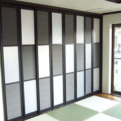 間仕切壁はビニールクロスで仕上げました。木製はそりが問題になるのでアルミ製です、床は琉球畳です。