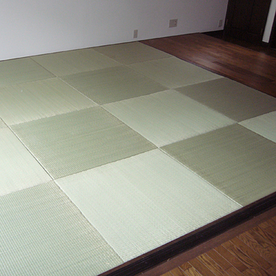 間仕切壁はビニールクロスで仕上げました。木製はそりが問題になるのでアルミ製です、床は琉球畳です。