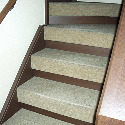 「ウーー」そこでコルクボードを貼りました。暗い階段が明るくなったような気がします。